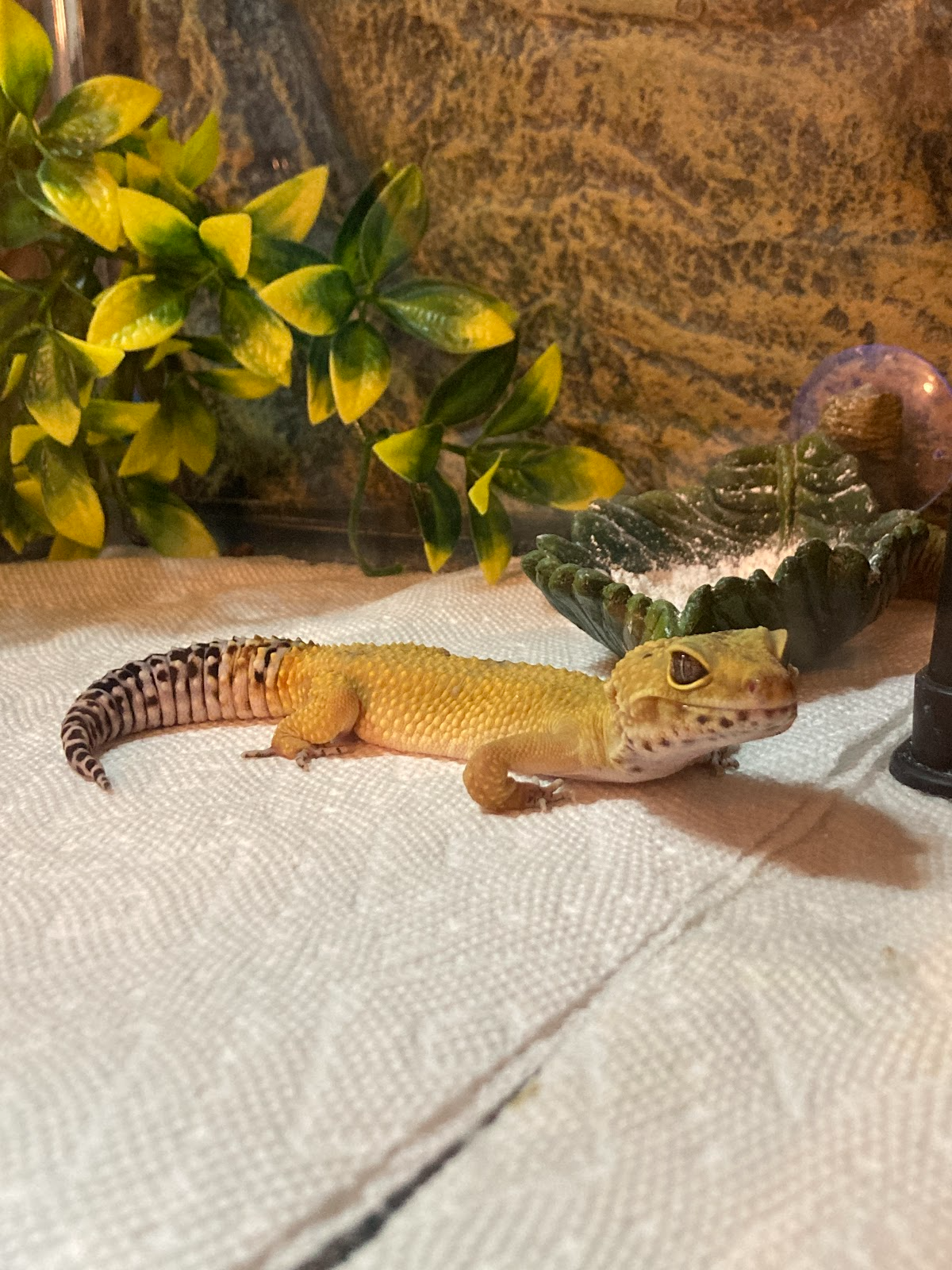 Leopard geckos can also be flighty, but in my experience they are a little more tame. They’ll usually sit on you if you’re warm and only really climb on your clothes if you let them. They do sometimes get the random urge to try and leap off of you so you’ll also need to be highly alert.