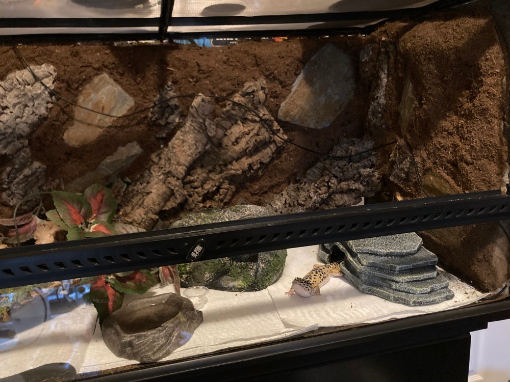 The first difference you’ll see in my geckos enclosures, pictures shown below, is that the crested gecko has a vertical enclosure while the leopard gecko has a horizontal one.